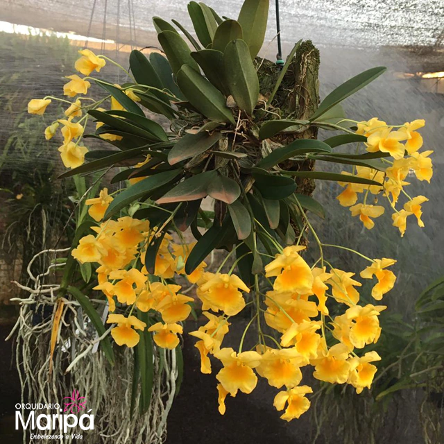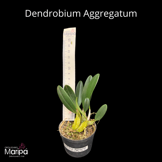 Dendrobium aggregatum é uma especie de orquidea originária do Himalaia á China. De fácil cultivo, se adapta muito bem na maioria das regiões. Com floradas intensas, apresenta flores pequenas em cachos pendentes, na cor intensa amarelo gema.